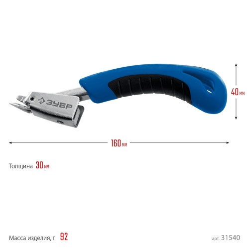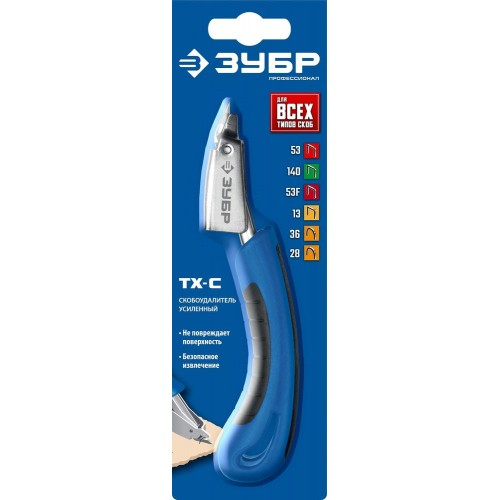Универсальный скобоудалитель ЗУБР 31540_z02, предназначен для удаления скоб различного типа и размера. Корпус изготовлен из закалённой стали. Фиксация извлекаемой скобы обеспечивает безопасность работ. Эргономичная конструкция обеспечивает удобство работы.
