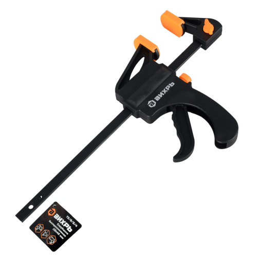 Струбцина быстрозажимная Вихрь имеет прочную стальную направляющую, что обеспечивает ей долгий срок службы. Эргономичная рукоятка и простая система снятия фиксации позволяет работать даже одной рукой.