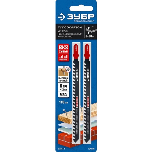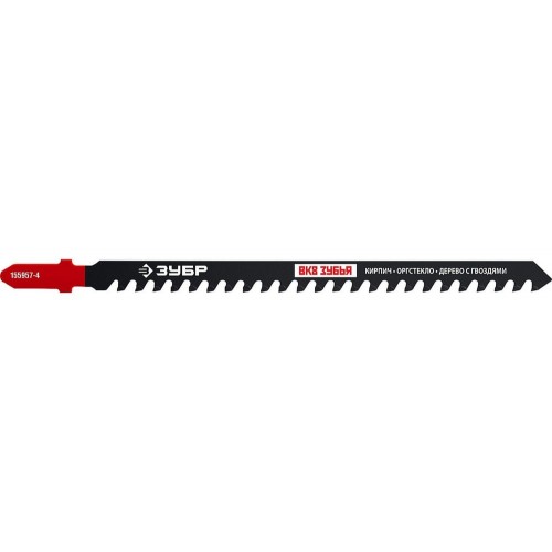 Полотно для эл/лобзика ЗУБР 155957-4, предназначено для работ ножовочной пилой в пенобетоне, кирпиче. Полотна ЗУБР изготовлены из качественной высокоуглеродистой стали с использованием высокоточных технологий заточки твердосплавных зубьев. Твердосплавные зубья с трёхсторонней заточкой позволяют осуществлять резку гипсокартона, кирпича и легкого бетона без принудительного охлаждения.