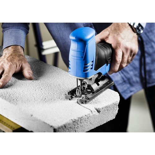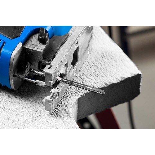 - Увеличенная рабочая длина полотна обеспечивает возможность резки строительных материалов повышенной толщины