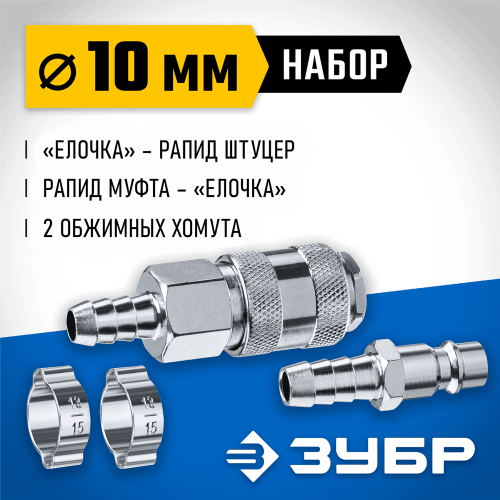 ЗУБР 10 мм набор переходников с хомутами 64920-10-H Профессионал