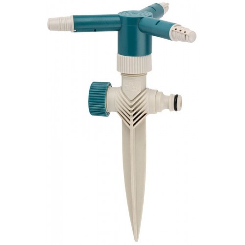 Распылитель для полива RACO 4260-55/665C, предназначен для стационарного полива растений при подключении к водопроводному шлангу с помощью соединителя. Два соединительных гнезда позволяют создать цепочку из поливочных распылителей. Площадь полива регулируется простым поворотом трех наконечников. Пластиковая пика надежно фиксирует распылитель в почве.
