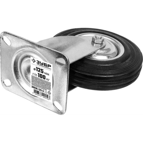 Колесо поворотное ЗУБР 30936-125-S применяются для перемещения тележек и легковесного оборудования. Рекомендуется для полов с неровностями и препятствиями, а также для использования внутри помещений и на улице. Колесные опоры обеспечивают удобное перемещение тележек и контейнеров легкой и стандартной грузоподъемности, легковесного оборудования, строительных лесов и прочих конструкций. Благодаря износостойким материалам колесные опоры находят применение как в помещениях, так и вне их, легко преодолевают различные препятствия, не повреждают напольные покрытия. Крепежная платформа свободно вращается благодаря шариковому подшипнику. Благодаря этим свойствам, подходят для применения на промышленных предприятиях, в общественных учреждениях и т.п. Стальной штампованный диск обеспечивает повышенную прочность. Игольчатый подшипник обеспечивает легкость вращения колеса. Специальная прокладка предотвращает попадание пыли в полость шарикового подшипника на опоре. Цинковое покрытие надежно защищает изделие от коррозии.