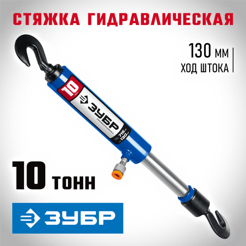 Стяжка гидравлическая ЗУБР 43023-10, предназначена для стяжки металлических конструкций. Используется для проведения восстановительных кузовных работ. Гидравлическая стяжка работает совместно с гидравлическим насосом, который создает давление в стяжке. Имеются 2 крюка с резьбовой фиксацией.