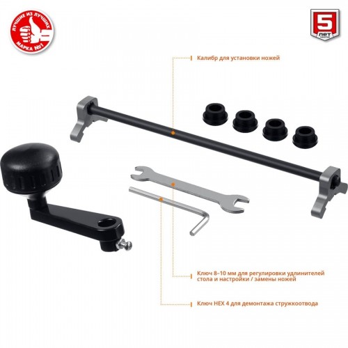 • Два ножа из быстрорежущей стали подходят для обработки как мягких, так и твердых пород древесины