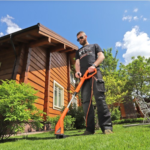 Легкий и тихий электротриммер PT 350 предназначен для стрижки и подравнивания газонов и травы вокруг стволов деревьев и вдоль дорожек на небольшом приусадебном участке. Триммер отличается особенной легкостью и комфортом работы за счет нижнего сбалансированного расположения двигателя. Все элементы управления встроены в эргономичную рукоятку. Регулируемая раздвижная штанга помогает подстроить удобное положение оператора при работе.