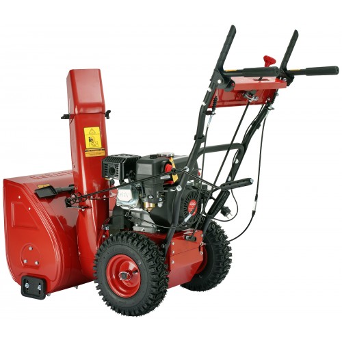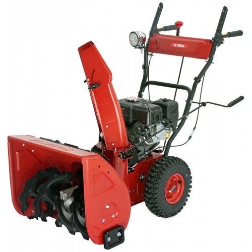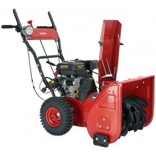 Самоходная снегоуборочная машина СМ 0756ЛЭ (E1609.011.00) с двух ступенчатой системой выброса снега. Используется для уборки снега с дорожек, тротуаров и других участков, с выбросом снега в сторону. Снегоуборочная машина оснащена бензиновым 4-тактным двигателем OHV, с ручным запуском и запуском от электросети. Спереди снегоуборочной машины расположен ковш с вращающимся шнегом для забора снега и последующего его выброса в сторону через разгрузочный желоб. Направление выброса снега регулируется на 190 градусов. Модель оснащена LED фарой, что облегчает её использование при эксплуатации в темное время.
