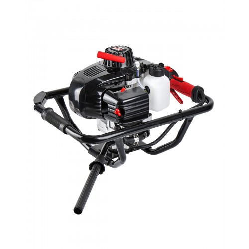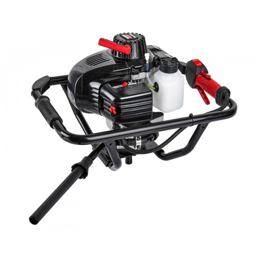 Бензиновый мотобур с двухтактным двигателем мощностью 3 л.с. (2,2 кВт) и передаточным числом редуктора 30 к 1, предназначен для бурения грунта и льда шнеком диаметром от 40 мм до 200 мм на глубину до 1,8 метров. При эксплуатации мотобура необходимо правильно выбрать тип шнека (для грунта, для мерзлого грунта или для льда). Шнеки для разных типов грунта отличаются режущей головкой.