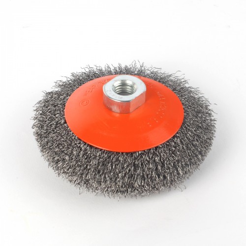 тарельчатая проволочная щетка для УШМ для снятия лака;  краски;  зачистки ржавчины;  Наружный диаметр: 115мм;  посадка: М14; стальная гофрированная проволока