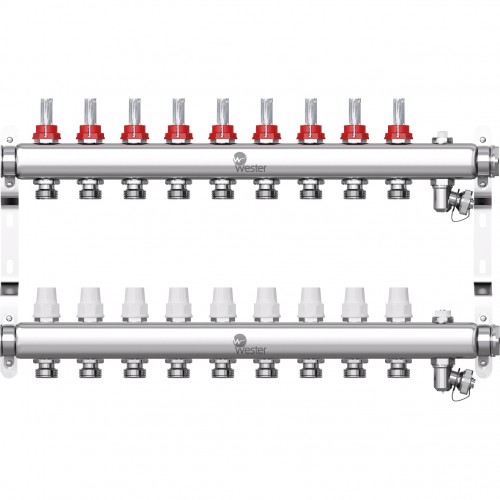 Коллектор Wester нерж. MUFS 1"-3/4 в сборе с расходомерами на 9 выходов