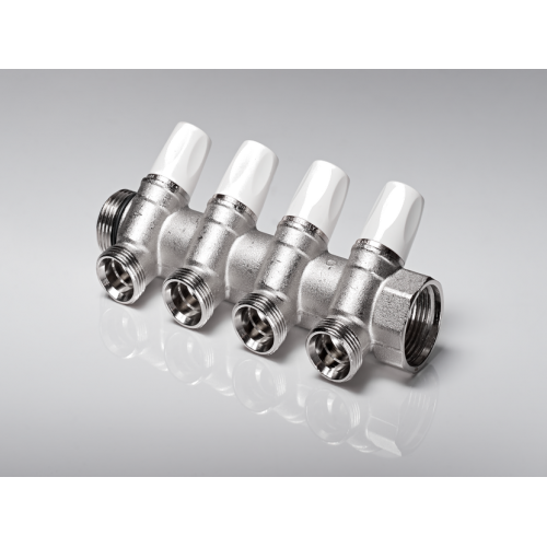 • Коллектор латунный с регулирующими вентилями 1"х3/4" 4 выхода под евроконус