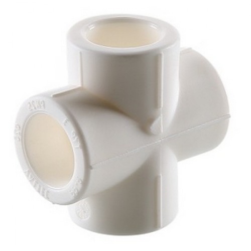 Фитинг для соединения четырех полипропиленовых труб равного диаметра (крестовина). Монтаж производится методом раструбной сварки.