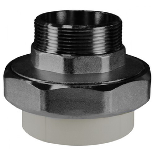 Муфта комбинированная разъёмная (американка) с наружной резьбой — комбинированный полипропиленовый фитинг. Представляет собой разъемное соединение между металлической и пластиковой трубой. Латунные части производятся методом горячего штампования, пластиковые - методом литья под давлением.