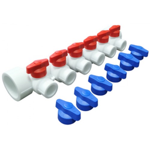 Коллектор универ. PP-R с отсечными кранами Ø40х20 6 вых. VALFEX Белый (1/6)