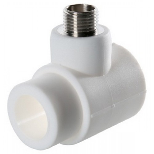 Тройник полипропиленовый коллекторный с наружной резьбой можно применить для изготовления коллекторов: сваривая фитинги друг с другом, монтажник получит распределитель потоков с необходимым числом выходов (межцентровое расстояние – 53–54 мм). Благодаря разборным соединениям использовать такое изделие бывает удобнее, чем готовый полипропиленовый коллектор с отводами под приварку PPR-труб. Корпус тройника выполнен из полипропилена PPR100, закладная резьбовая деталь – латунная (марка сплава – CW617N, способ изготовления – горячее штампование), никелированная. Диаметр патрубков под муфтовую сварку (внутренний/наружный) – 40 мм, резьбы – 1/2, 3/4".