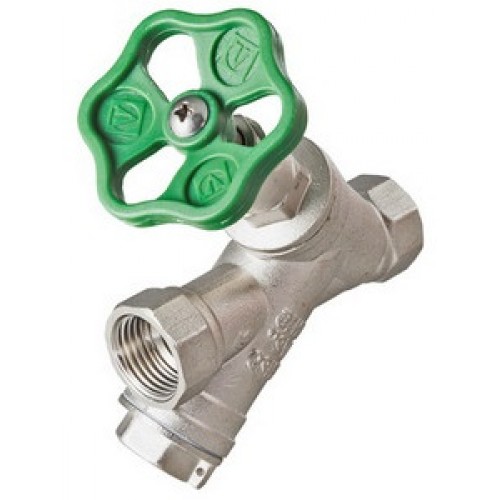 Корпус вентиля с косым фильтром выполнен из латуни методом горячей объемной штамповки с последующим никелированием. Золотник – конусный, с уплотняющей прокладкой из EPDM. Сетчатый фильтроэлемент изготовлен из нержавеющей стали AISI 316, стойкой к остаточному хлору. Пробка фильтра имеет ушко для пломбировки; в качестве ее уплотнителя использована прокладка из тефлона. Вентиль полностью ремонтопригоден. Максимальная рабочая температура – 130 °С.