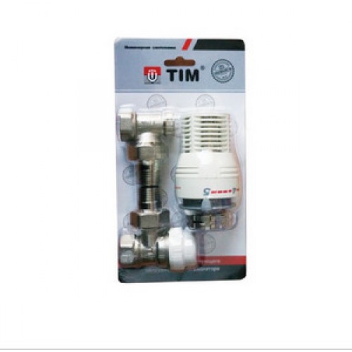 Термостатический комплект угл. Ø1/2" TIM предназначен для подключения прибора водяного отопления, автоматического регулирования расхода теплоносителя через него в зависимости от температуры воздуха в помещении, гидравлической балансировки системы отопления.