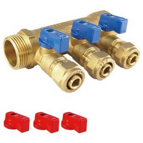 Описание TIEMME 1х1/2 Коллектор распределительный с шаровыми кранами на 3 выхода