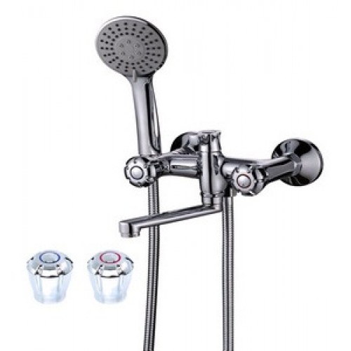 Смеситель для ванны лат. короткий L-излив встроен.диверт. КС 63010204