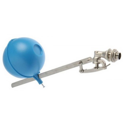 Поплавковый клапан для водяных резервуаров разработан для предотвращения перелива воды. Он самостоятельно прекращает её подачу, когда уровень жидкости достигает выставленной отметки. Поток возобновляется, при снижении уровня ниже установленного. Рычаг, использующийся в конструкции, является двуколенным. За счёт этого возрастает сила закрытия механизма по мере увеличения количества жидкости. Поплавковый клапан для ёмкости или бака поставляется в комплекте с резиновыми уплотнениями и прижимной гайкой для крепления снаружи резервуара.