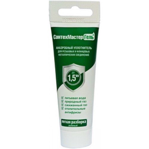 Анаэробный герметик для металлических резьбовых и фланцевых соединений. Образует высокопрочное уплотнение, устойчивое к различным средам: вода, природный и сжиженный газ, бензин, отопительные антифризы и др. СантехмастерГель — уплотнительный материал последнего поколения. Ранее такие материалы применялись только в сфере обороны, космоса и высокотехнологичного машиностроения, но в настоящее время получили широкое распространение благодаря продвижению на открытом рынке.