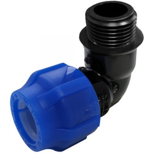 Отвод компрессионный с наружной резьбой — фитинг предназначенный для соединения под углом полиэтиленовой трубы и элементов с резьбовыми соединениями.