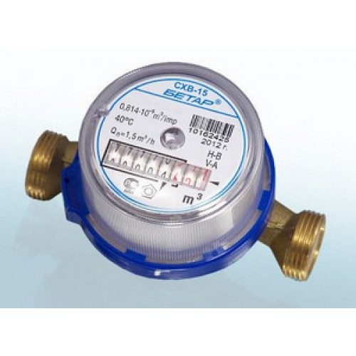Счетчик воды БЕТАР СХВ-15 предназначен для измерения объема холодной питьевой воды, протекающей по трубопроводу при температуре от плюс 5°C до плюс 40 °С при давлении не более 1,0 МПа (10 кгс/см2).