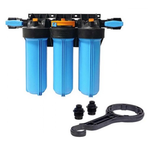Использование трехступенчатых корпусов фильтра рекомендуется в случаях, где необходимы картриджи разных фильтрующих свойств. Это существенно облегчит монтаж и последующее обслуживание системы по сравнению с одинарными корпусами.