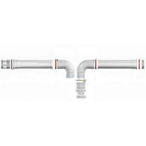 Комплект раздельной системы Ø80 для вертикального или горизонтального монтажа. Состав: 2 удлинения M/F длиной 1000 мм; комплект из 2-х отводов 90°; наконечник трубы забора воздуха; соединительные хомуты, прокладки и крепежные винты; адаптер Ø60/100 - Ø80 для раздельного дымохода, переходник на котел для подключения воздуховода. Устанавливается непосредственно на котле. Заказывать дополнительно с оголовком дымоудаления (3318031 или 3318027).
