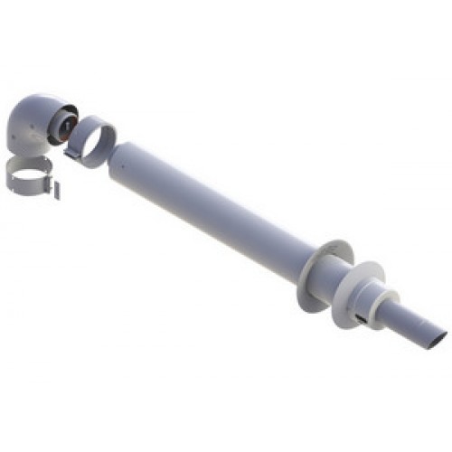 Комплект коаксиальный Ø60/100 - 750 мм из AL/PPS с трубой дымоудаления тип B32. Состав: удлинение для отвода продуктов сгорания/притока воздуха Ø60/100 длиной 750 мм, коаксиальный отвод 90° Ø60/100 из AL/PPS, прокладки и крепежные винты, фланцы для стены с дюбелями. Устанавливается непосредственно на котле.