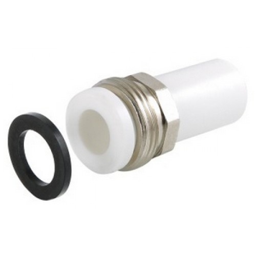 Фитинг для соединения полипропиленового трубопровода и компонента инженерной системы с помощью накидной гайки. Резьба – наружная трубная по ГОСТу 6357.