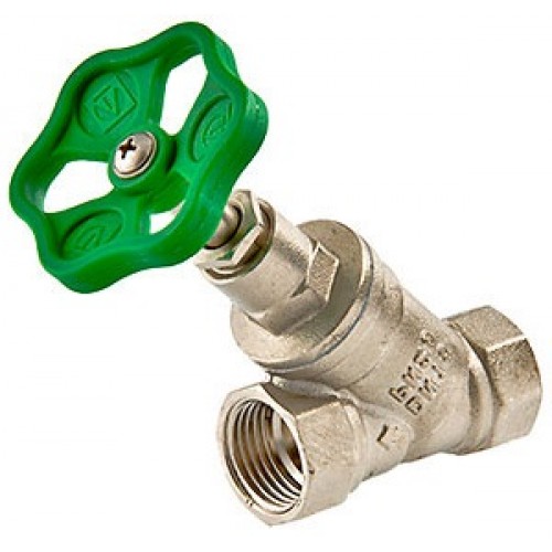 Прямоточный запорно-регулировочный вентиль, полнопроходной, ремонтопригодный. Используется на трубопроводах жидких (углеводороды исключены), газообразных сред, неагрессивных к примененным материалам, при температуре –40… +130 ºС, рабочем давлении до 16 бар. Арматура широко применяется в водо-, теплоснабжении для плавного регулирования расхода воды/теплоносителя, перекрытия канала, настройки систем. Особенности конструкции – разворот вентильной головки по ходу движения потока – обеспечивает повышенную пропускную способность вентиля. При изготовлении использована латунь марок CW617N (корпус, пробка), CW614N (детали запорного механизма), тефлон (сальниковая втулка), EPDM (уплотнения), нейлон (маховик управления). Корпус изделия никелирован.