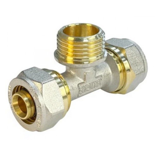Тройник - обжимной фитинг для соединения трех металлополимерных труб