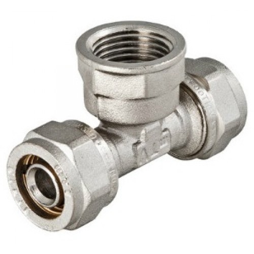Фитинг обжимной – тройник с переходом на внутреннюю резьбу для металлополимерных (металлопластиковых) труб. Резьба фитинга – внутренняя трубная по ГОСТу 6357.