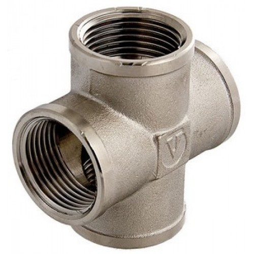 Латунный никелированный четырехсторонний фитинг, равнопроходной VTr.760.N используется на трубопроводах холодного, горячего водоснабжения, водяного отопления, сжатого воздуха, иных газов и жидкостей, неагрессивных к используемым материалам, с температурой до 120 °С. Фитинг выполнен методом горячего прессования из качественной сантехнической латуни, никелирован. Могут применяться на трубопроводах из различных материалов. Резьба – внутренняя, цилиндрическая трубная по ГОСТу 6357 (ISO 228, EN 10226), совместимая также с наружной конической трубной резьбой по ГОСТу 6211 (ISO R7).