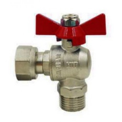 Кран шар. угл. с накидной гайкой ник. Ø3/4" нар. /внутр. бабочка TIM