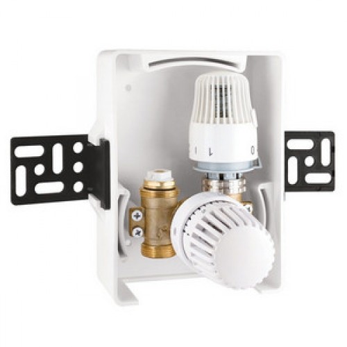 Монтажный комплект BOX 1 – комплект со встроенным автоматическим регулятором температуры теплоносителя и термостатическим клапаном, управляемым термоголовкой.