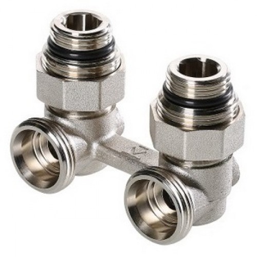 Особенность узла – угловое расположение относительно друг друга патрубков присоединения к отопительному прибору и трубной разводке. Это, в частности, упрощает так называемое тыльное подключение отопительного прибора – при скрытых в стене подводящих трубах.
