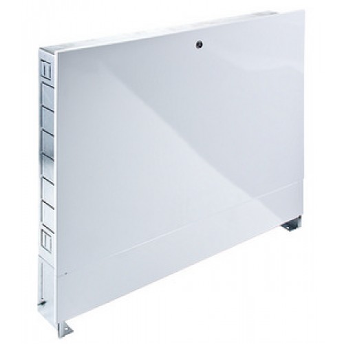 Встраиваемые коллекторные шкафы (распределительные шкафы) VALTEC VTc.540 предназначены для размещения в них коллекторов и коллекторных блоков систем внутреннего водопровода и отопления, а также смесительных узлов для водяного теплого пола VT.COMBI и VT.DUAL. Монтаж шкафа осуществляется в стенной нише. Детали шкафов коллекторных VALTEC выполнены из оцинкованной стали. Лицевые поверхности окрашены порошковой эмалью цвета RAL 9016 с предварительной фосфатной подготовкой поверхности. В боковых стенках корпуса выполнена перфорация, сегменты которой удаляются в месте, удобном для пропуска присоединяемых трубопроводов. Выдвижные ножки дают возможность регулировать высоту шкафа от 670 до 760 мм. Ножки имеют отверстия для крепления шкафа к полу. Откидная дверца имеет замок, защищающий установленное в шкафу оборудование от несанкционированного доступа. Внутри шкафа установлены передвижные монтажные рейки, к которым крепится оборудование. Встраиваемые коллекторные шкафы VTc.540 оснащены выдвижной рамкой, которая позволяет регулировать глубину установки от 125 до 195 мм, и могут закрепляться в нише с помощью отгибных фиксаторов. Ширина предлагаемых моделей: ШРВ 1 – 494, ШРВ 2 – 594, ШРВ 3 – 744, ШРВ 4 – 894, ШРВ 5 – 1044, ШРВ 6 – 1194, ШРВ 7 – 1344 мм.
