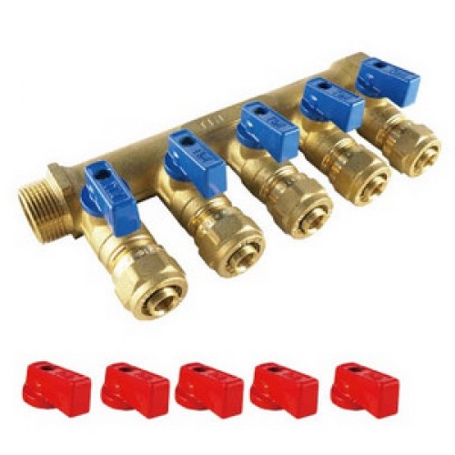 Коллектор с отсекающими кранами 5 выходов Ø3/4"х16 цанга TIM (7)