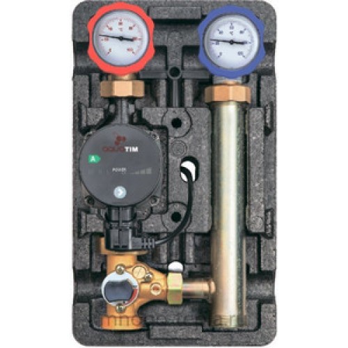Насосная группа быстрого монтажа с трехходовым смесительным клапаном без насоса TIM представляет собой готовый комплект арматуры в сборе (без насоса), предназначеный для принудительной циркуляции, регулировки и поддержания заданной температуры теплоносителя в системах отопления со смесительным контуром. Чаще всего используется в качестве контура теплого водяного пола.