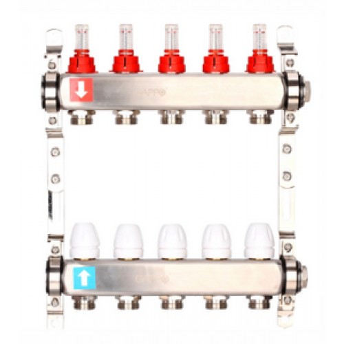 Коллекторная группа (нерж) с расходомерами без ВО и дренажных кранов 11 вых. Ø1" GAPPO