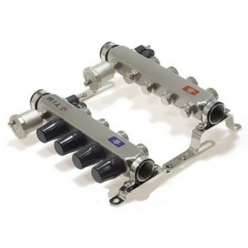 Коллекторная группа (нерж) без расходомеров с ВО и дренажными клапанами 6 выходов Ø1" TIM (2)