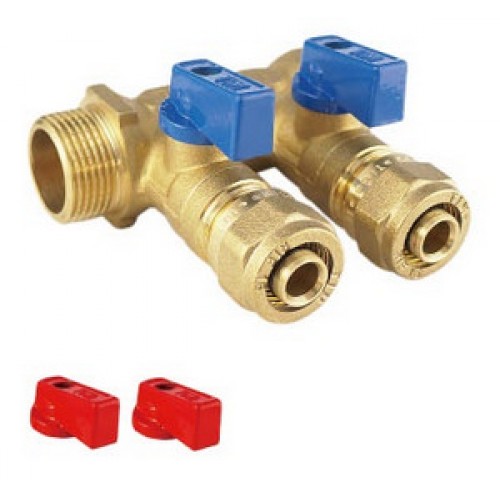 Коллектор с отсекающими кранами 2 выхода Ø1"х 20 цанга TIM (10)