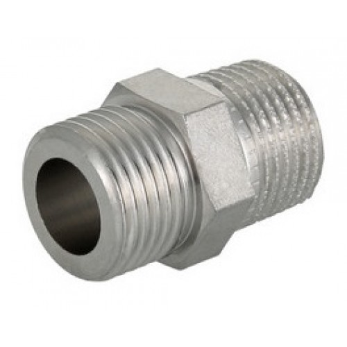 Ниппель из нержавеющей стали в составе системы VT.INOX-PRESS предназначен для соединения элементов с внутренней резьбой равного диаметра. Резьба одного патрубка имеет насечки – для эффективного удержания уплотняющего материала. Шестигранный – под гаечный ключ – участок корпуса облегчает монтаж соединения. Материалом изделия служит сталь марки AISI 304, устойчивая к коррозии, химическому и термическому воздействию. Область рекомендуемого применения фитингов VT.INOX-PRESS чрезвычайно широка, однако исключает трубопроводы жидких углеводородов и хлороводородных растворов.