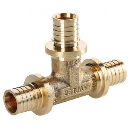 Надвижной тройник VTm.431.BG – трехсторонний латунный универсальный аксиальный фитинг для монтажа неразъемных соединений труб из PEX и PE-RT.