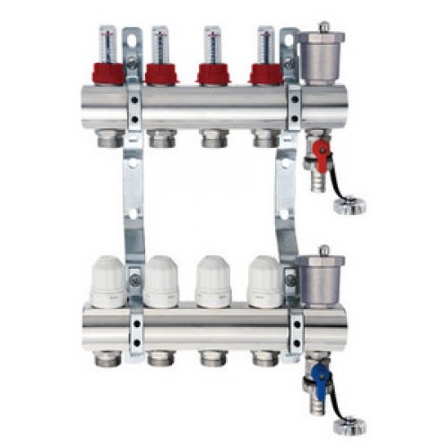 Коллекторная группа предназначена для распределения потока транспортируемой среды по потребителям, обеспечивает сбалансированную подачу теплоносителя к потребителям - радиаторам и контурам "теплого пола". Коллекторная группа представляет собой 2 коллектора, закрепленных на кронштейнах. Патрубки коллекторных групп оснащены расходомерами, позволяющими более точно сбалансировать систему.