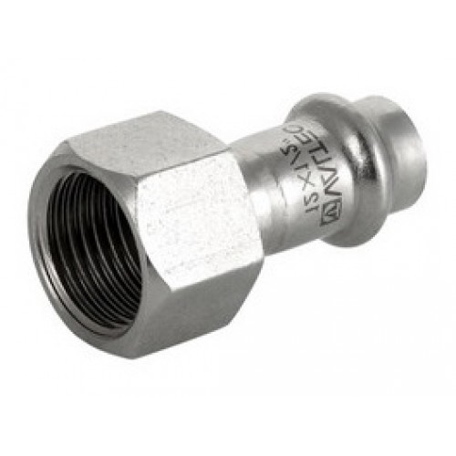 Пресс-фитинг из нержавеющей стали с внутренней резьбой обеспечивает соединение тонкостенной стальной трубы с резьбовым элементом монтируемой системы. Область применения – трубопроводы водоснабжения, отопления, иные инженерные и технологические установки с рабочей температурой до 95 °С и давлением до 16 бар. Концевой переходник с внутренней резьбой VTi.902.l изготовлен из стали AISI 304. Материал уплотнения – эластомер EPDM Sh70. Пресс-соединение – бесштуцерное. Обжатие производится с помощью пресс-инструмента V-профиля. Шестигранный – под гаечный ключ – участок корпуса облегчает монтаж резьбового соединения.