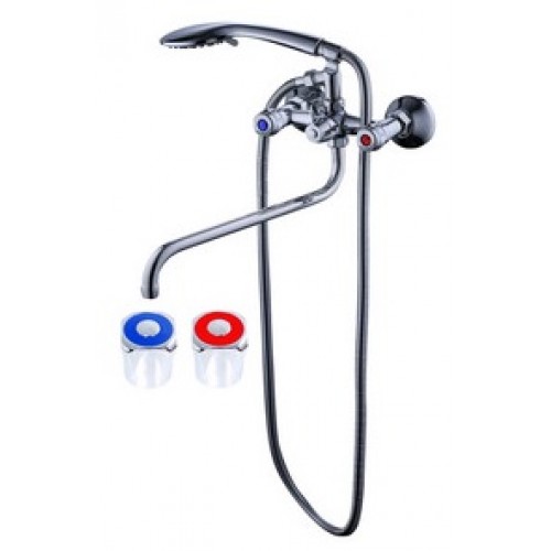 Смеситель для ванны лат. длин. кругл. S-излив встроен.диверт. КС 870124