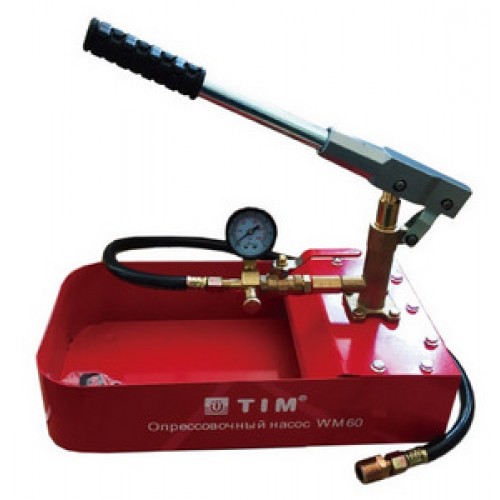 Опрессовочный аппарат TIM, 7л - инструмент компактный и простой по конструкции. Для его работы не требуется ничего, кроме силы оператора. Подача воды осуществляется из емкости самого опрессовщика, давление жидкости отображается на встроенном в аппарат манометре. Ручной гидравлический опрессовщик (опрессовочный насос) применяется, когда объемы работ невелики. Например, при сезонной сдаче объекта к отопительному сезону или при работе на отдаленных участках трубопроводов.